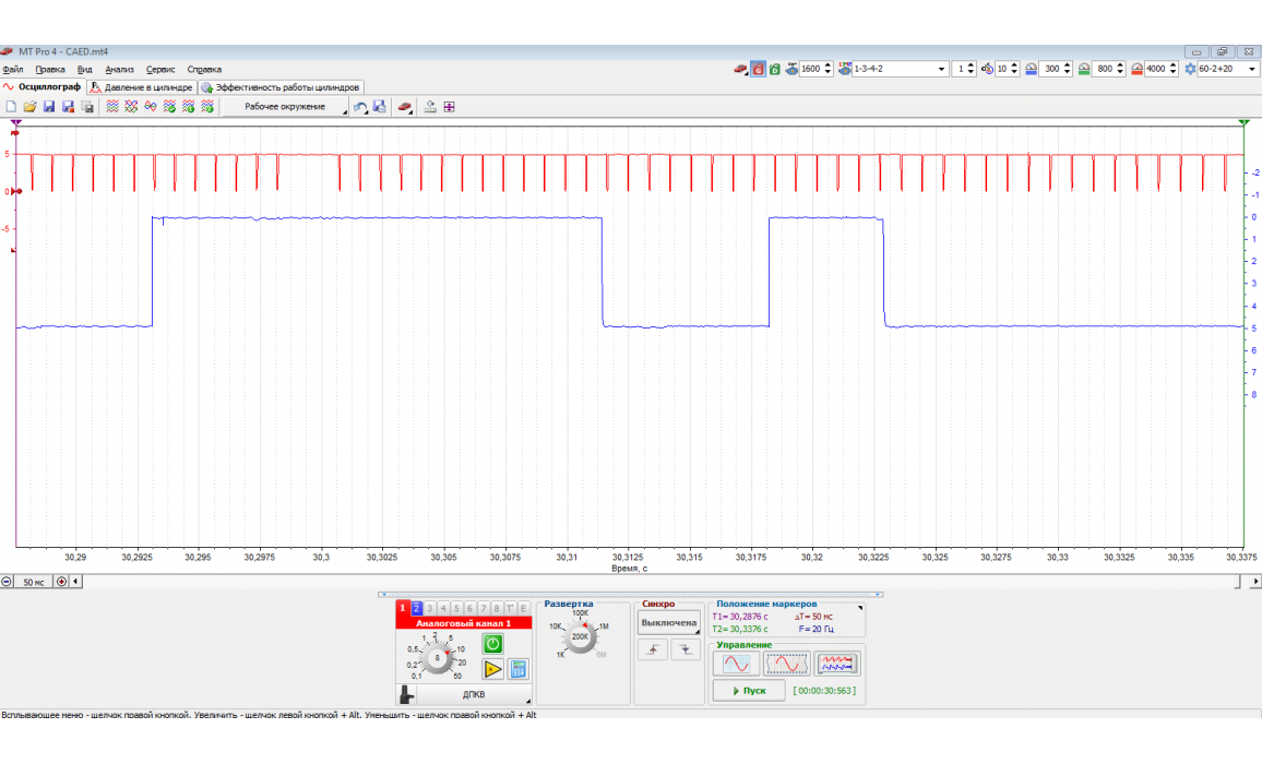 Осциллограмма снята после установки новой цепи, и правильной установки ДПКВ (датчик был установлен с перекосом за счет закусывания уплотнительного кольца по итогу отсутствовал сигнал ДПКВ).