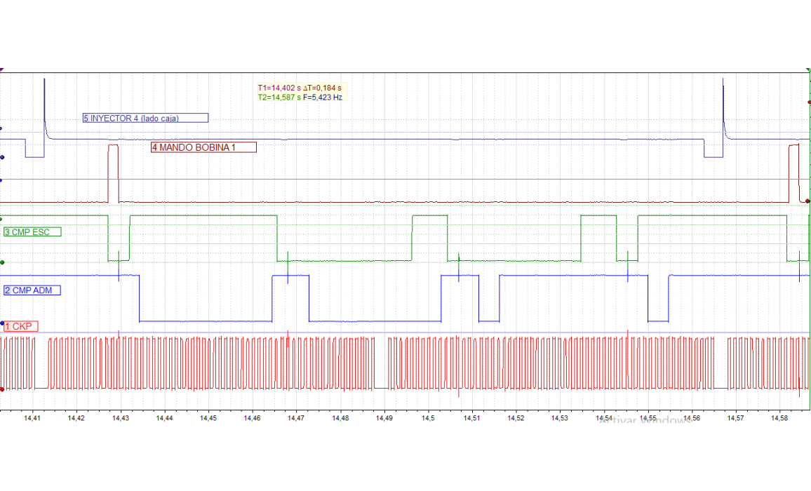 Muestra de forma de onda tomada en buen estado con motor caliente. Esta forma de onda es para Opel corsa equipado con motor 1.4 VTI (LDD) Motor (B14XEJ)doble arbol de levas sin turbo año 2016. Esta señal el valida para motor (A14XEL) (LDD) lo equipa el Corsa-D año 2013