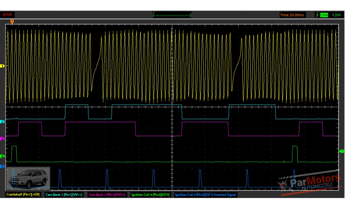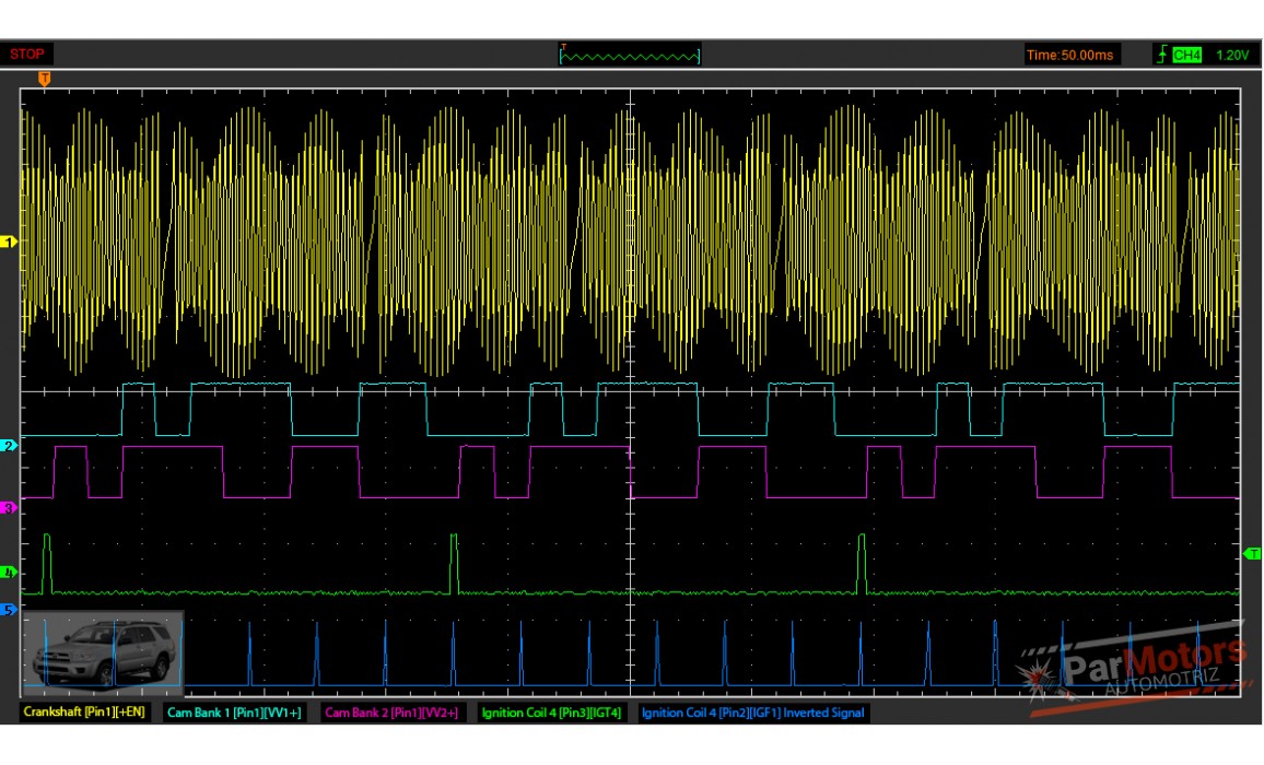 Crankshaft and Camshaft Correlation. Good Timming. Motor Speed: Idle. Camshaft Timing Oil Control Valve: Conected.
