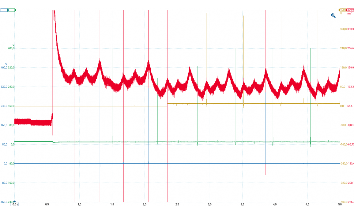 Blue is coil primary 1, Red is Starter Current, Green is Coil primary # 3 and yellow is coil primary #4